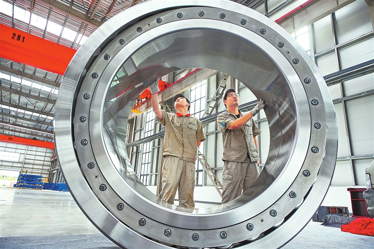 7月9日,全球最大22米辗环机全系列轴承在洛阳正式下线。 潘炳郁 余柯 摄