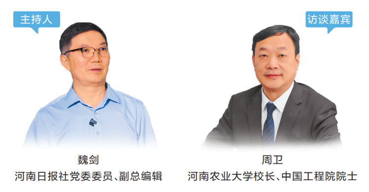 本期“总编有约·‘两高四着力’大家谈”,邀请河南农业大学校长、中国工程院院士周卫,与河南日报社党委委员、副总编辑魏剑一起,围绕推进教育科技人才一体化发展这一话题进行交流。