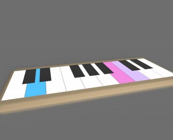 展项由触摸传感器、控制器和音乐系统组成。将体验者在地面琴键上的活动转化为钢琴音符。实现一个可以让人们互动 的实时音乐演奏平台。当参与者踩到琴键的适当位置 ,触发传感器 ,装置会发出美妙的响音音阶的声响。