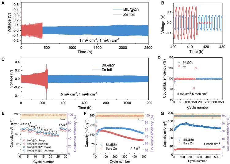 图5:锌金属负极的电化学性能。