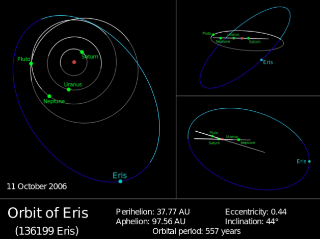 阋神星公转轨道示意图,具有高倾角和高偏心率