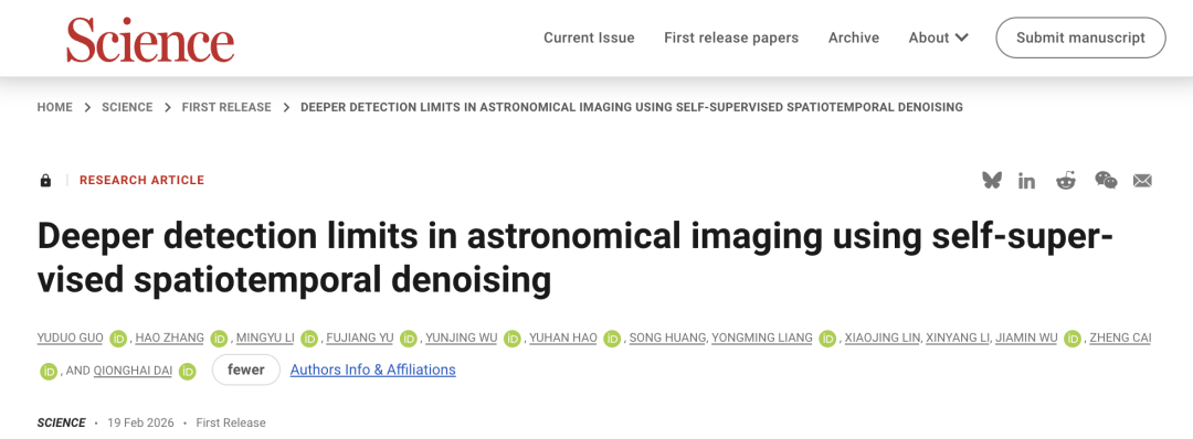 日前,清华大学自动化系戴琼海教授、天文系蔡峥副教授、自动化系吴嘉敏副教授等带领团队基于计算光学原理与人工智能算法,提出时空自监督计算成像模型——星衍 (ASTERIS),攻克极低信噪比下的高保真光子重构难题,突破天文观测深度极限,将詹姆斯·韦伯空间望远镜探测深度提升1个星等,找到3倍数量于过往研究的极暗弱高红移候选天体,探测到超过130亿光年的星系,并获取目前国际已知探测最深的深空影像。该成果2月20日凌晨在线发表于《科学》。