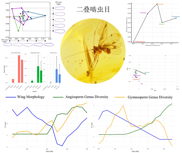 昆虫是地球上最早掌握飞行能力的动物,其翅的演化是征服天空的关键。然而,全球性灾难事件如何影响这一演化过程?研究人员将目光投向了一种跨越石炭纪至白垩纪的古老昆虫——Permopsocida二叠啮虫目,这种昆虫恰好经历了地球历史上最严重的二叠纪末大灭绝以及白垩纪被子植物革命,是研究演化与灭绝相互作用的理想对象。