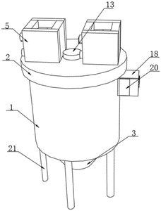 本实用新型公开了一种防结块功能的改性塑料混料仓,具体涉及塑料生产技术领域,包括混料仓,所述混料仓的顶部设置有盖体,所述盖体的顶部设置有搅拌机构,所述混料仓的底部设置有出料漏斗,所述出料漏斗的一侧设置有输送机构,所述盖体的顶部设置有定量机构,所述定量机构包括开设在盖体顶部的两个进料孔,两个所述进料孔的顶部均设置有输料框,所述输料框的一侧设置有两个第一电机,其中一个所述第一电机的一侧设置有控制器。本实用新型可以对进入混料仓内部的物料进行定量控制,还可以对混料仓内部的物料进行重合混合搅拌,防止物料在混料仓内部发生结块的现象。